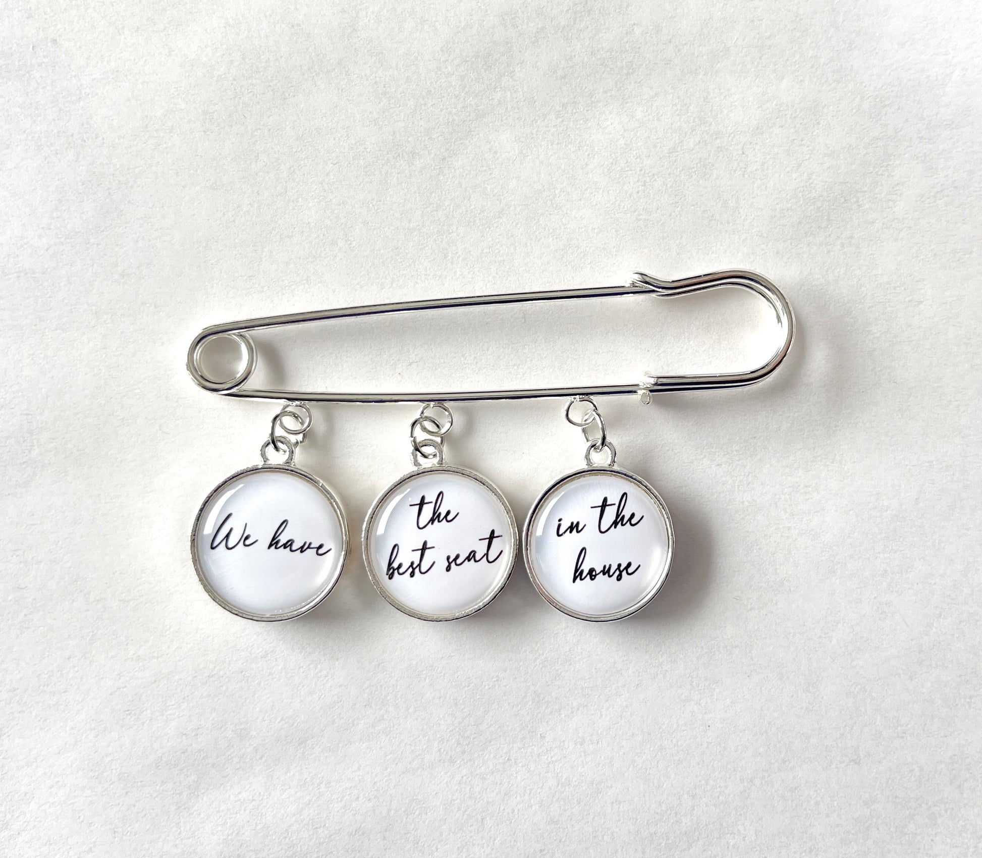 *The Pin is 2 1/2" across and made of silver. We add a jeweler's grade resin coating over the print so it's water resistant and it has that amazing 3 dimensional affect.